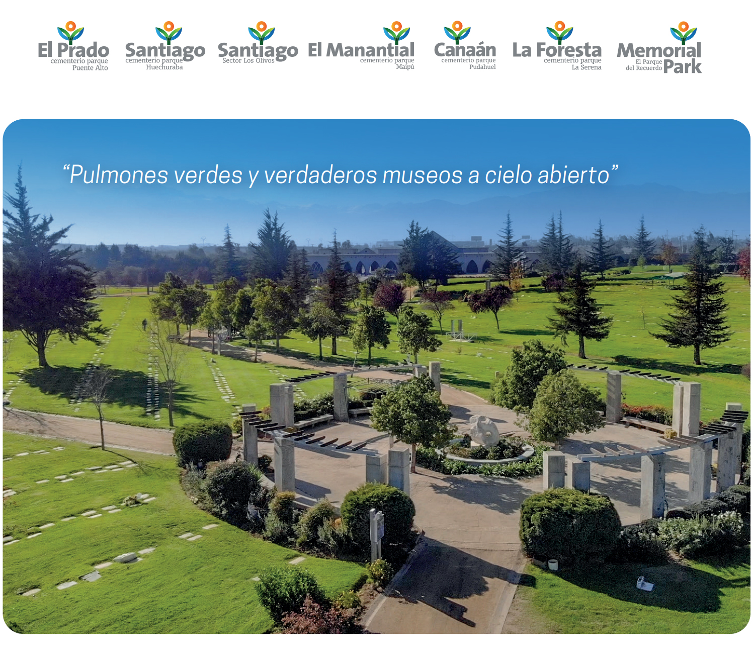 Ofrecemos cementerios tipo parque, compuestos por amplias áreas verdes, jardines y un cuidado paisajismo. Destacandose por ser verdaderos pulmones verdes llenos de naturaleza. Esta cualidad los convierte en parques para el descanso eterno de un ser querido.